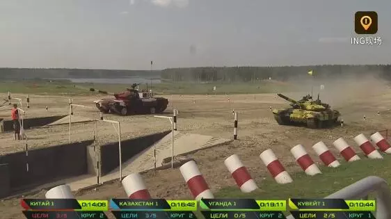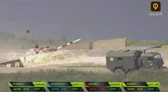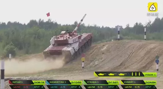 今天的比赛是“坦克两项”的首场比赛,比赛过程中,排在第三位出发的中国队凭借参赛队员的稳定发挥和坦克的优异性能,在赛道上分别超越了提前4分钟出发的乌干达与提前2分钟出发的哈萨克斯坦,率先冲过终点。