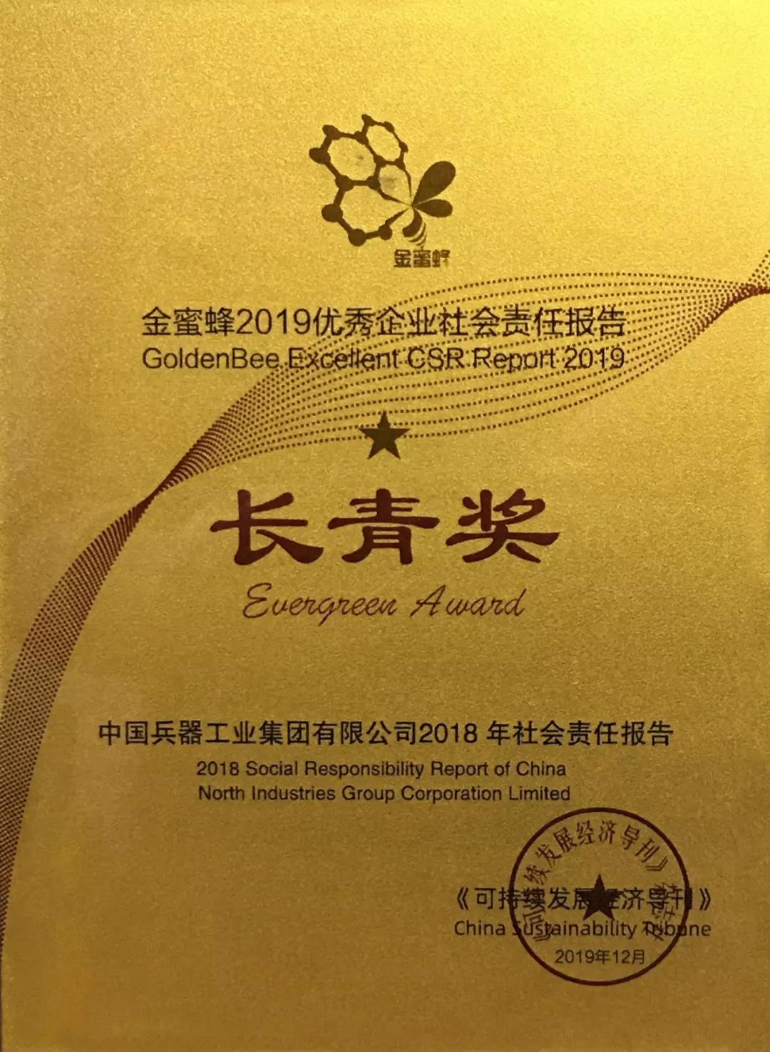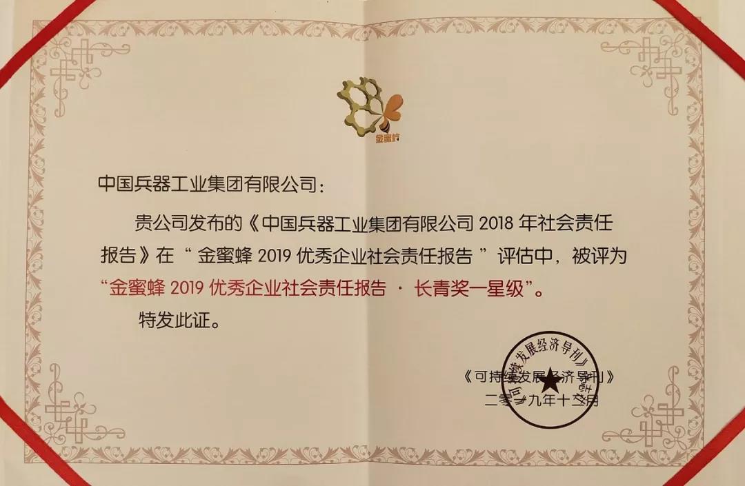 12月5日,在第十二届中国企业社会责任报告国际研讨会发布的“金蜜蜂2019优秀企业社会责任报告榜”上,《中国兵器工业集团有限公司2018年社会责任报告》从近1600份报告中脱颖而出,连续第二年荣获“金蜜蜂优秀企业社会责任报告·长青奖”。同时,也是连续第6年获得优秀企业社会责任报告奖项。