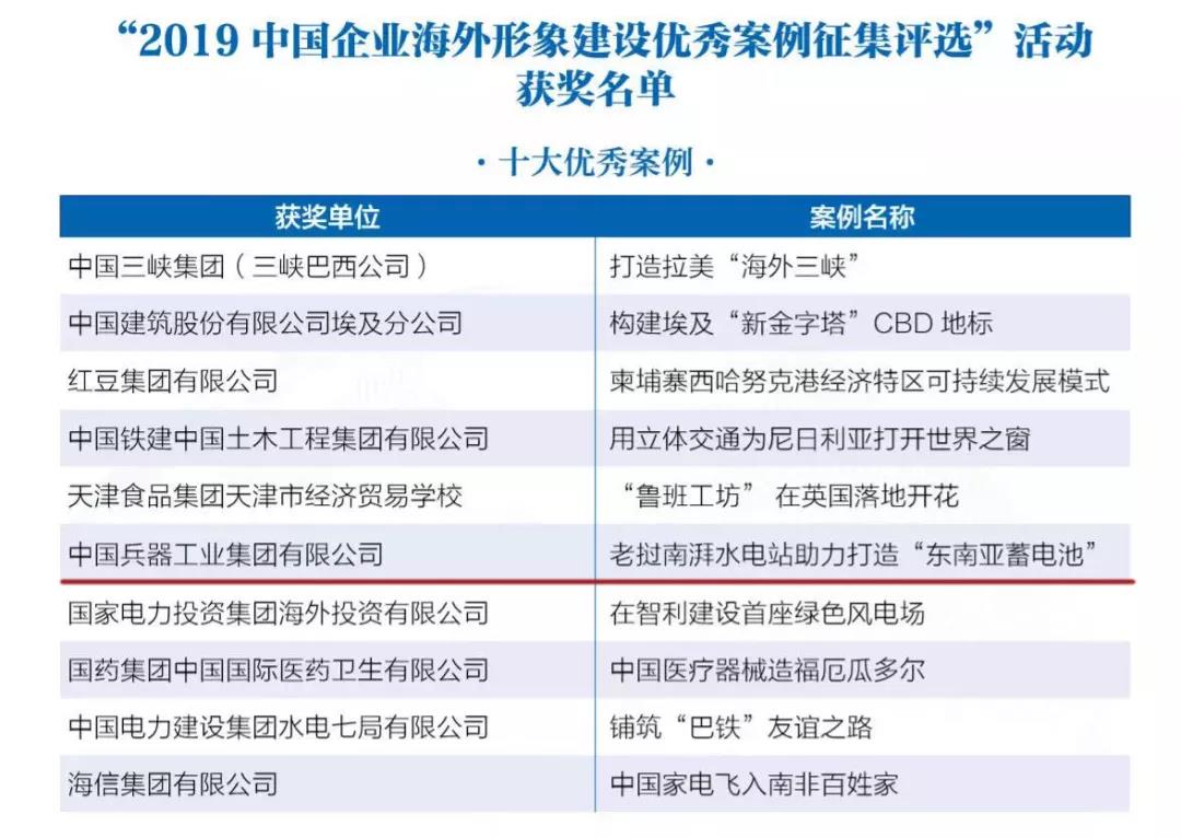 兵器工业集团海外项目荣获2019中国企业海外形象建设十大优秀案例及卓越社会责任奖 |