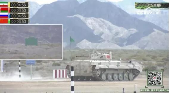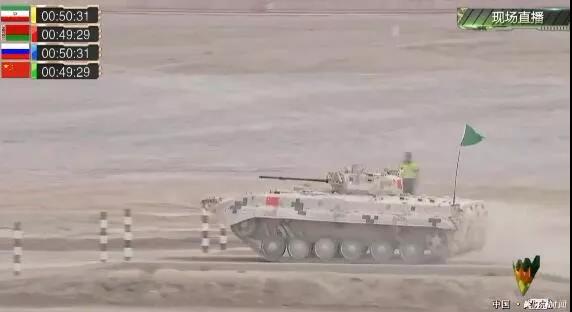 第一圈,使用15发30毫米穿甲曳光弹短停对3个步战车目标侧向射击