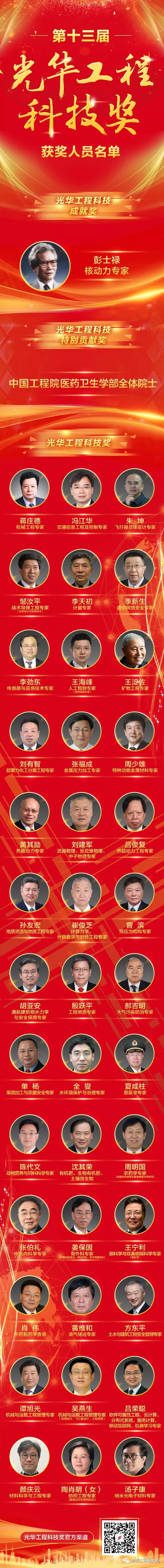 11月8日,第十三届光华工程科技奖揭晓仪式在北京隆重举行。中国兵器工业集团有限公司科技委副主任委员、战术导弹工程专家邹汝平获第十三届光华工程科技奖(获奖人员全名单及邹汝平事迹附后)。 光华工程科技奖由中国工程院主管,每两年颁发一次,目前已是第十三届,被誉为“中国工程界最高奖项”,极大地激励了我国工程师、科学家从事工程科技研究、发展、应用的积极性和创造性。根据光华工程科技奖候选人提名要求,候选人需在重大工程设计、研制、建造、生产、运行、管理等方面解决关键科学技术问题或在工程科学技术及工程管理领域有重要发现、发明,并有显著应用成效,或者是应用本人研究成果、发明创造,发展高新技术及相关产业,成效特别显著者才可提名。今年,全国范围内共产生了296名有效候选人。 此次揭晓仪式正式公布了从296名候选人中评选出的第十三届光华工程科技成就奖、光华工程科技特别贡献奖以及光华工程科技奖的获得者,最终仅有40位专家和1个团体获奖。本届光华工程科技奖的获奖科学家们,紧密围绕国家重大战略需求,瞄准经济建设和事关国家安全的重大工程科技问题,紧贴新时代社会民生现实需求和军民融合需求,加快自主创新成果转化应用,为创新驱动发展,建设科技强国,以及实现“两个一百年”奋斗目标和中国梦做出了重要贡献。 获奖人员全名单