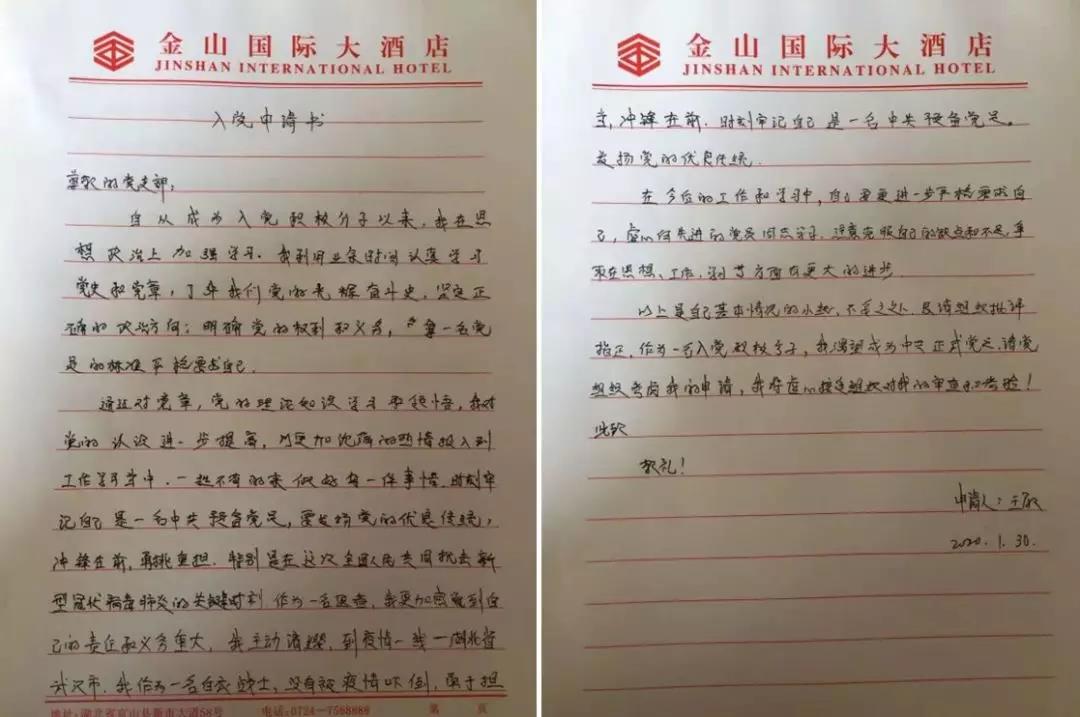 1月30日,在武汉战“疫”第一线,短短的两天,让青年护士王敏、王晓霞最惊讶、最感动的就是防控疫情党员先行,最危急的关头、最危险的地方总有共产党员冲在前面,“我是党员我先上”成为最响亮的口号。到达武汉的第二天,她们就向内蒙古卫健委成立的援助武汉临时党支部递交了入党申请书。她们表示,要在武汉防疫一线努力工作,向党员同志学习、看齐,以实际行动早日成为一名正式的共产党员!
