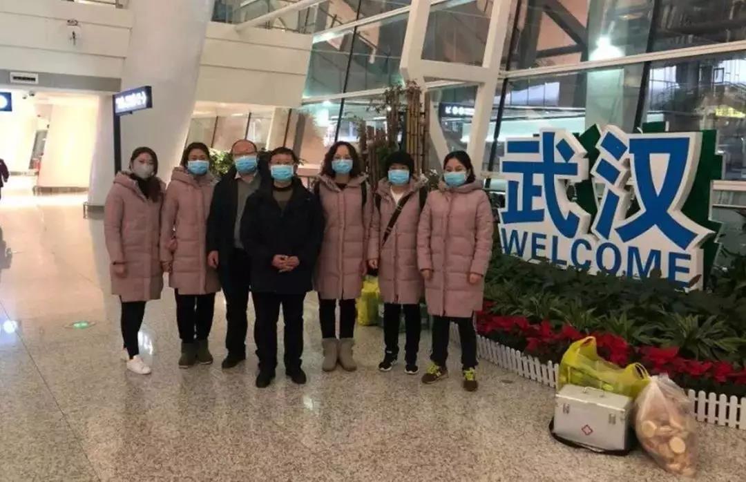 中国兵器支援武汉医疗队到达武汉(左7王敏、左1王晓霞)