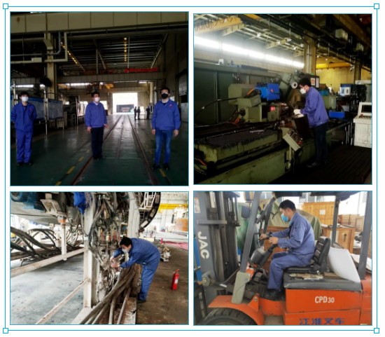 “防疫物资到位、人员排查到位、复工手续齐全。疫情防控关口已下沉到班组,生产正常推进。” 经过紧张有序的前期准备工作,地处湖北武汉的中国兵器工业集团武重集团正式进入复工复产状态。 3月19日上午8时,首批复工人员准时抵达公司,戴着口罩,在接受体温检测、手部消毒后,进入厂区。 提前谋划 打好“双战役” 3月13日以来,武重集团先后召开公司党委会议、董事长办公会,传达学习习近平总书记考察湖北新冠肺炎疫情防控工作时的重要讲话精神,树信心、鼓干劲、战疫情、促发展,动员全公司上下紧盯全年各项目标任务,迎难而上、奋力拼搏,努力把疫情耽误的时间“抢”回来,做到贯彻落实习近平总书记重要讲话精神更加到位,统筹推进疫情防控和企业发展更加有效。 为切实做好公司复工复产前后疫情防控,维护生产经营正常运行,按照复工有关要求,公司疫情防控领导小组组织制定了《复工复产防控新型冠状病毒肺炎疫情工作方案》、《疫情防控应急预案》以及疫情期间安全生产、员工管理、进出厂区管理和通勤车、食堂、消毒等后勤保障工作细则等文件,配备了口罩、防护服、测温枪、消毒水等防护用品及应急物资,设置了应急隔离区,确保复工后的防疫所需。 周密部署 筑牢“防疫墙” “复工任务虽急,人员安全更重,必须把好人员进场第一关。”在人员进场管控上,武重集团建立了这样一条“硬核规定”:员工必须每天通过企业微信提交体温信息,建立员工健康档案,筑牢复工“防疫墙”。 在接到复工批复后,公司领导多次带队深入生产现场,检查疫情防控工作和复工前的各项准备工作,协调解决项目在复工过程中存在的问题,要求通过优化产出计划拉动复工复产体系,使公司上下尽快进入达产达效状态。3月17日到18日,各单位按照各项预案措施针对安全、设备、就餐、消毒、乘车、住宿、应急体系演练、职工隔离工作等方面进行全面排查,全力确保疫情防控精准到位、安全生产有序推进。 公司领导到生产现场、职工食堂察看复工复产各项准备工作 做实做细 当好“排头兵” 新冠肺炎疫情发生以来,武重集团迅速投身战“疫”,充分利用武重集团“大国重器”技术及加工能力优势,多次为火神山医院、雷神山医院建设、防疫物资加工等急难险重任务贡献力量,展示了武重人“召之即来,来之能战,战之必胜”的优良作风。 随着复工的启动,武重集团生产指挥系统迅速重新编制了年度施工进度计划,将延误工期时间分解到各个施工阶段,保证施工节点任务完成,多个重大项目将从“暂?!蹦J角谢晃翱旖蹦J剑涌旄垂じ床?。 进入工作区前进行体温测量及消毒 复工单位开展班前会 各单位复工有序进行 食堂用餐避免扎堆 武重集团将以铿锵的步伐、昂扬的斗志,聚焦重点项目,全力以赴做好复工复产各项工作,继续发挥好大国重器、央企顶梁柱作用,奋力夺取疫情防控和企业发展双胜利。(武重集团) |