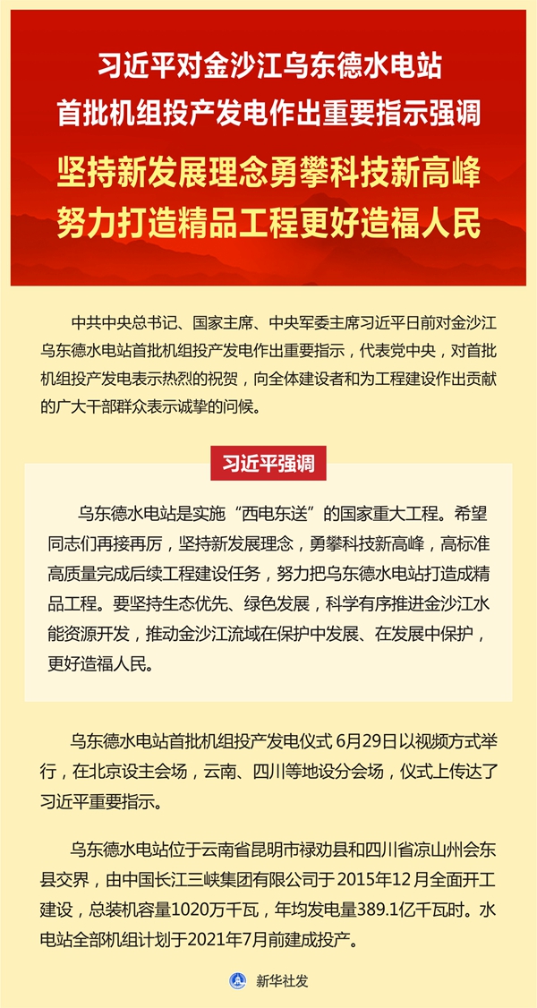新华社:习近平对金沙江乌东德水电站首批机组投产发电作出重要指示强调 |