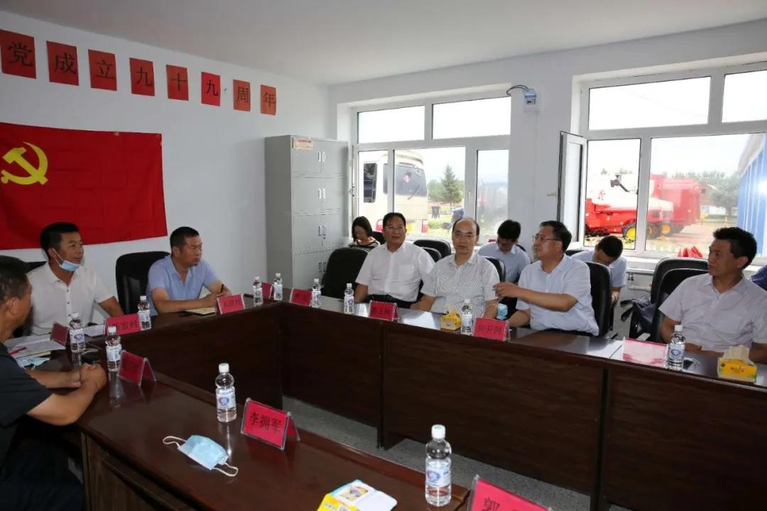 在兴隆乡新建村,焦开河听取了大岗村、新发村和新建村关于农机服务队项目运行情况、收益和减贫的情况介绍,详细了解了项目帮扶机制及未来发展想法。焦开河表示,农机服务队不仅实现了对贫困户的帮扶,还可以通过创收、维护、解决就业,带动农业机械化发展,是一个可持续项目。他强调,下一步要整合好各村农机服务队,实现更大规模的连片种植。焦开河专门叮嘱集团公司派驻大岗村第一书记吴宝明,要充分发挥驻村第一书记作用,抓好党建工作,积极培育致富带头人,为大岗村后续发展奠定好基础。