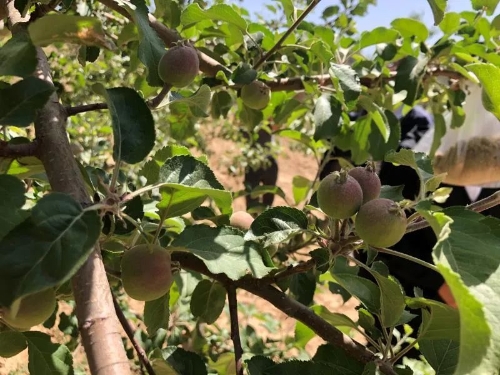 经过几年发展,石山村全村果园总面积达到2030亩,环山苹果种植片区已经呈规?;⒍啻伪黄牢影彩胁捣銎断殖」勰κ痉兜?,带来的衍生效益初步显现,获得各方面关注。2020年,480亩苹果果园开始挂果。