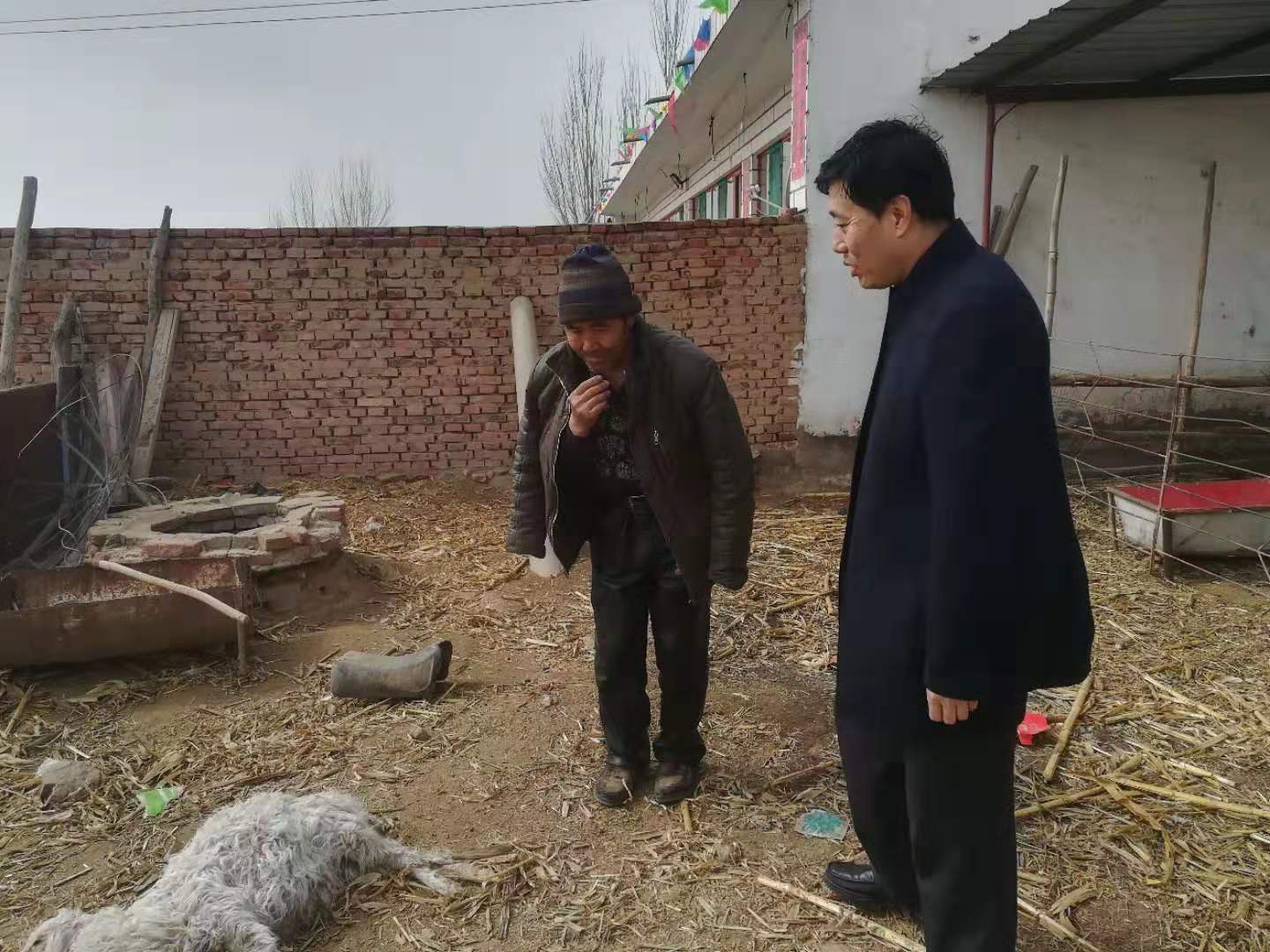 图为郭建峰查看困难户羊圈