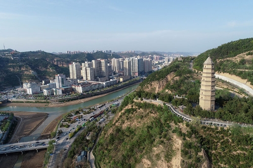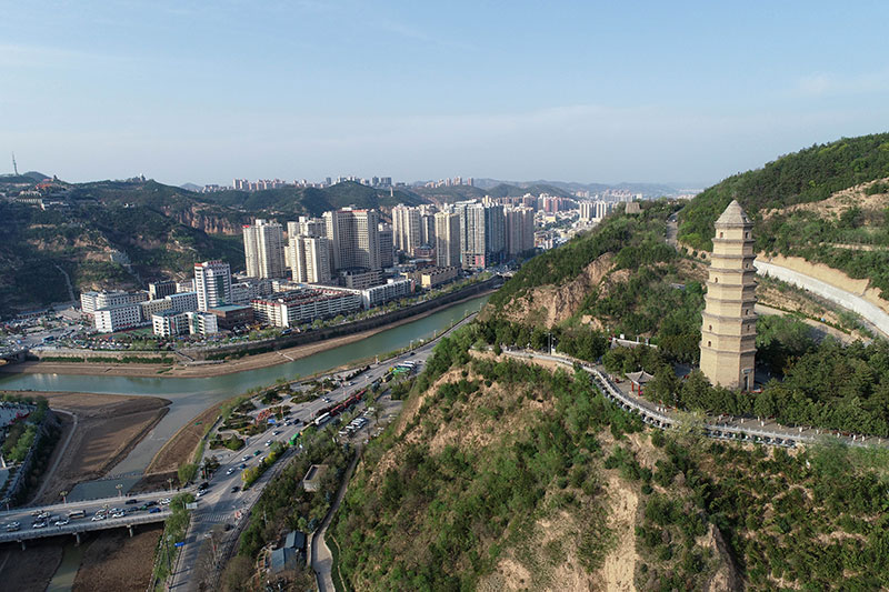 这是4月22日拍摄的延安市宝塔山(无人机照片)。新华社记者 张博文 摄