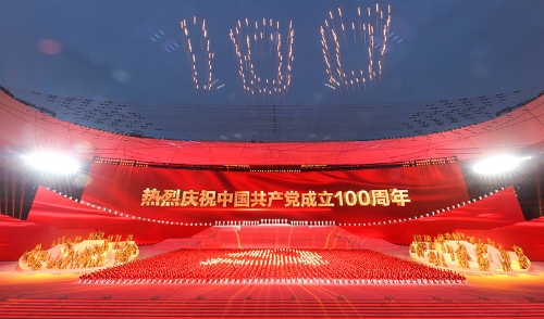 6月28日晚,庆祝中国共产党成立100周年文艺演出《伟大征程》在北京国家体育场盛大举行。这是盛典仪式。新华社记者 庞兴雷 摄