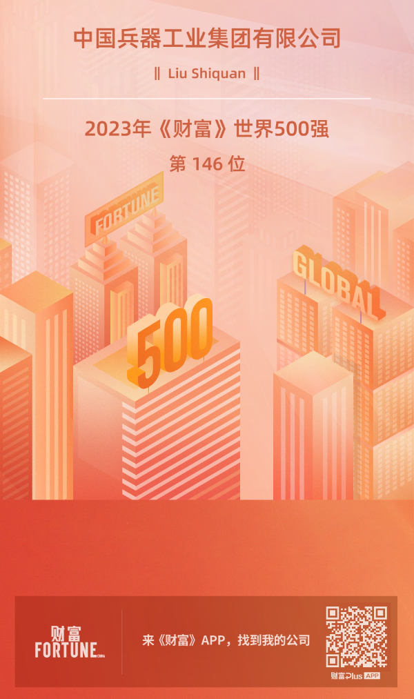 8月2日,2023年《财富》世界500强排行榜正式发布,中国兵器工业集团有限公司以826.89亿美元的营业收入排名第146位,连续第14年入榜。