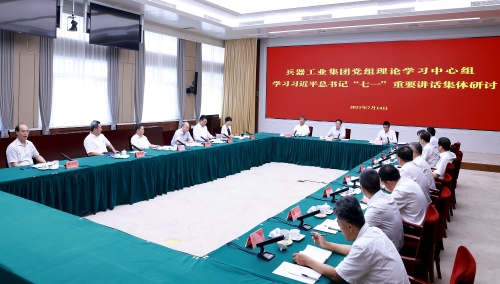 7月14日,中国兵器工业集团有限公司党组书记、董事长焦开河主持党组理论学习中心组集体学习研讨,学习贯彻习近平总书记“七一”重要讲话精神,交流学习心得体会,结合集团公司改革发展实际和各自分管领域、本职工作,研讨贯彻落实思路措施。